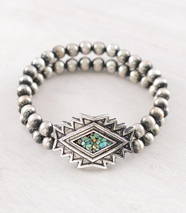 Western-inspired bracelet featuring turquoise and Aztec-style detailing
