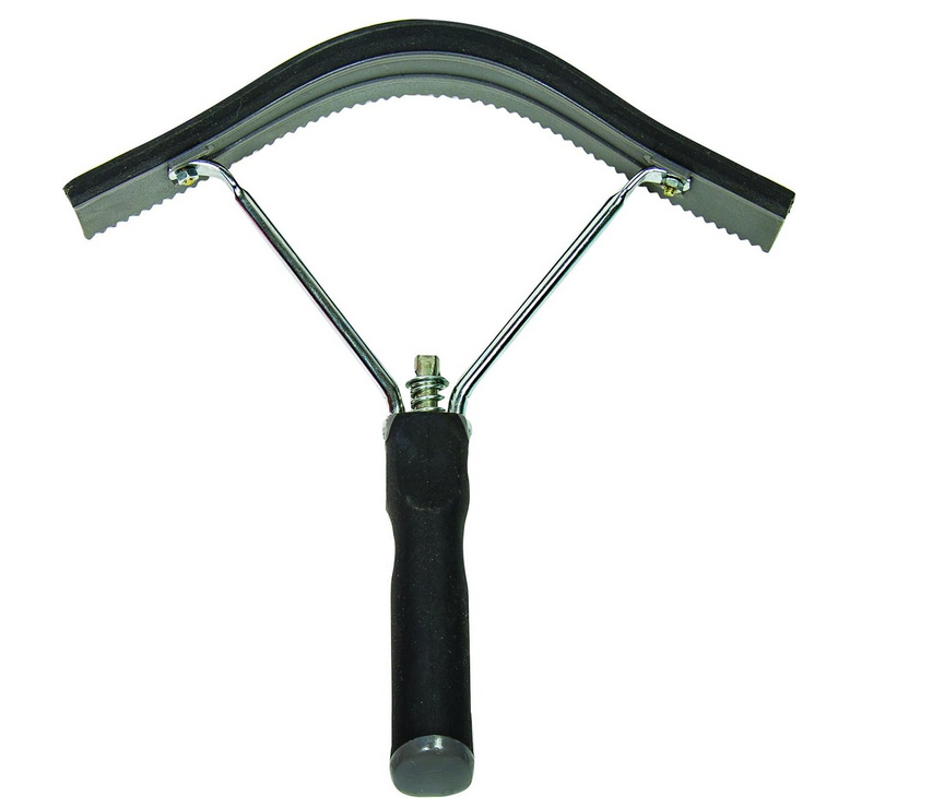 Double sided sweat scraper is reversible. Features a soft touch handle for comfort.
