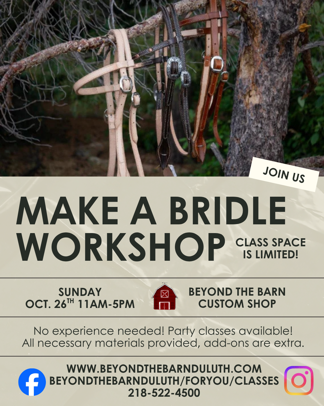 Make a Bridle Workshop! Sunday Oct. 26th 11-5