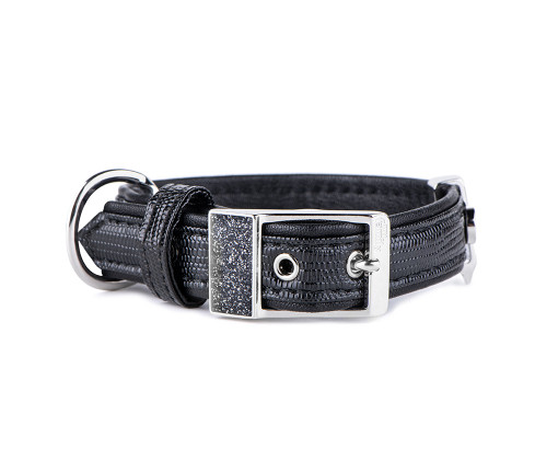 Black Sparkle Silver Spot Leather Dog Collar BTB