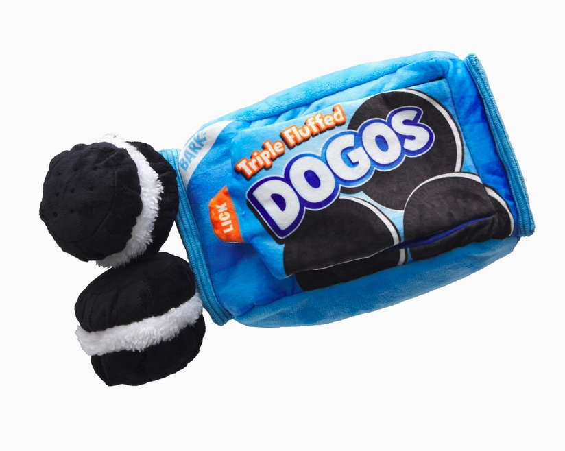 This pack of cookies dog toy is a real squeak treat! Dogo Dunkers is a 3-in-1 toy made with crazy crinkle and two squeakers—satisfying every pup’s play style no matter how they prefer to dunk, twist, lick, and chomp their Triple Fluffed Dogos! Hide treats inside the bag for a tasty way to play.