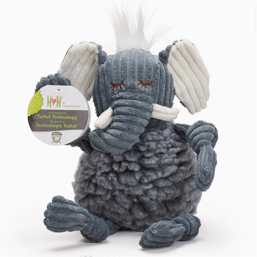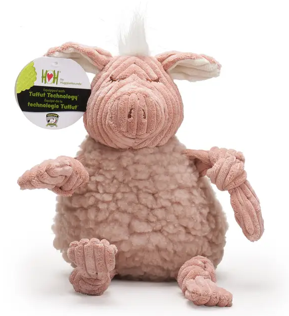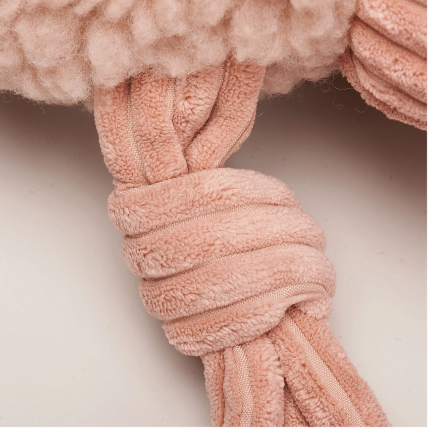 • Large plush dog toy combining soft HuggleFleece® fabric with knotted limbs