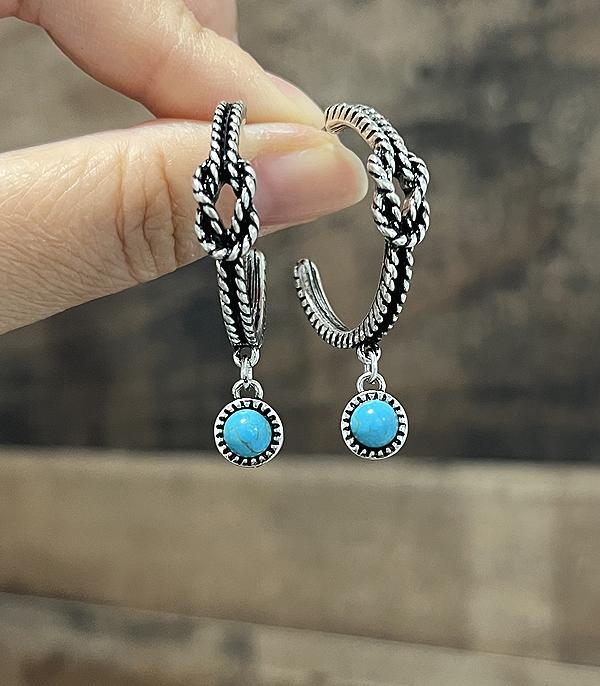 Saddle Stirrup Earrings On Wire with Aqua Bead Jewelry