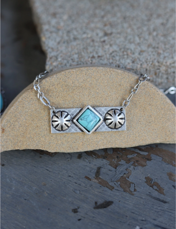 Justin Drop Dangle Square Knot W/Faux Turquoise Stone
