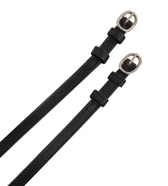 Black Leather Spur Straps with Plain Buckle- Size 18