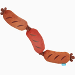 This sausage dog toy may just be the missing link from your pup's playtime. We've encased three squeakers and crazy crinkle within these Lickin' Links and connected them with super stretch bungee for thrashing and tugging. Time to find out how the sausage gets played!