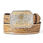 Ariat Mens Belt 1 7/8"-1 1/2" Floral Embossed Tapered Tan