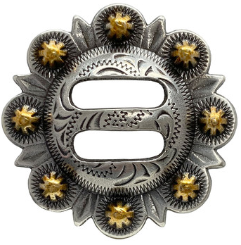 Antique Silver & Gold Swirl Slotted Berry Concho 1 1/2"