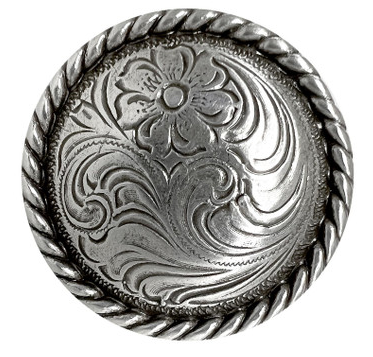 Antique Western Floral Rope Edge Engraved Concho 1 1/4"