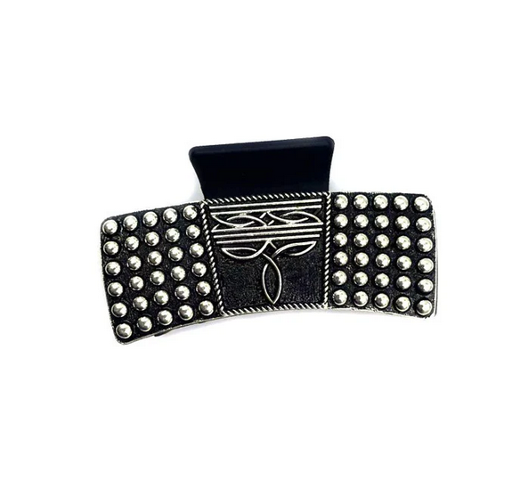 Raised bubble detailing and classic boot-stitch engraving give this Western Metal Plate Hair Claw bold texture and unmistakable Western character. The sleek metal plate adds dimension and shine, while the streamlined shape secures hair comfortably without feeling heavy. It’s an easy, polished way to add Western flair to everyday hairstyles.