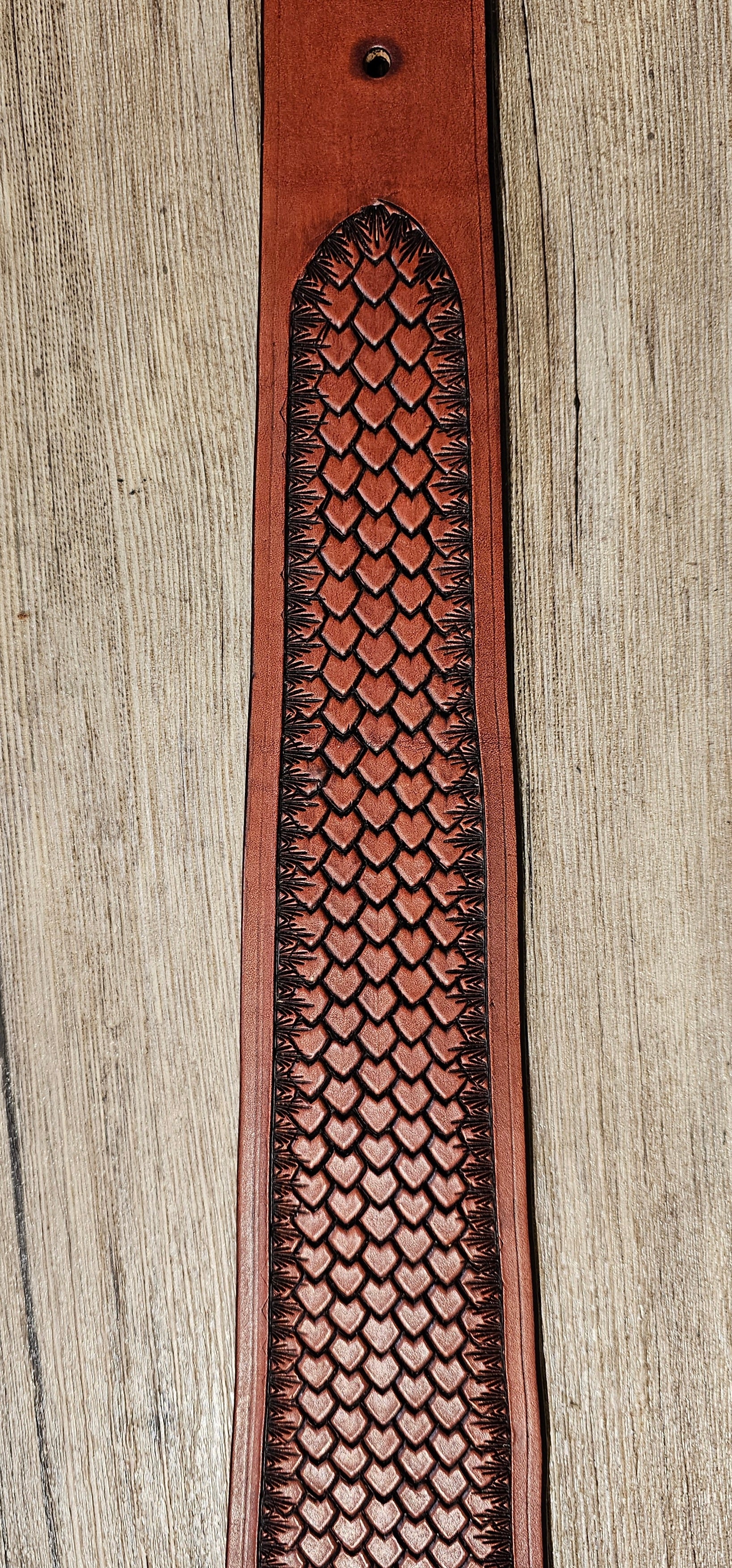 Tooled Leather Dragon Scale Rifle Sling BTB