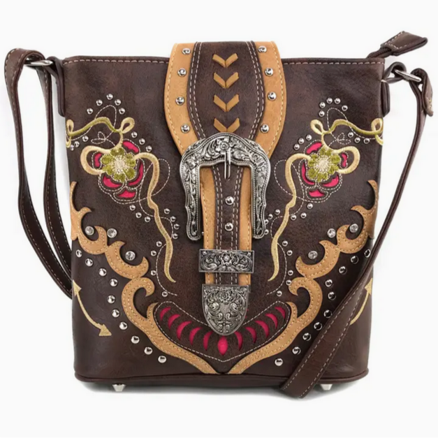 Elevate your ensemble with the Daisy Floral Embroidery Buckle Crossbody Purse, featuring intricate floral embroidery and a refined buckle detail. This elegant purse offers a perfect balance of style and practicality, designed to complement sophisticated looks while keeping essentials close at hand. Its compact crossbody design ensures comfort and ease, making it an ideal accessory for both day and evening occasions.