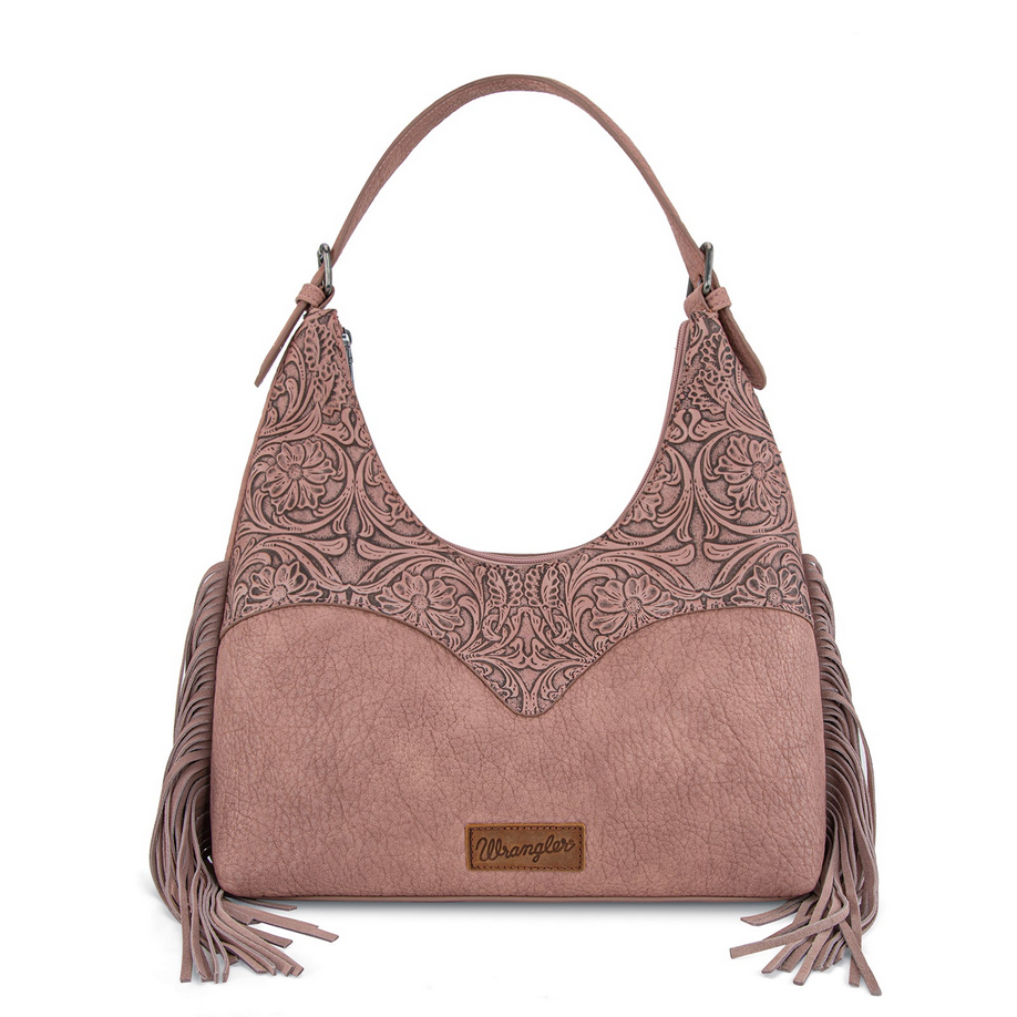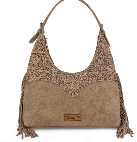 Wrangler Fringe Floral Tooled Hobo Bag