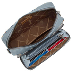 • Interior (Organizer): Single compartment divided by a medium zippered pocket; 2 bill compartments; 12 credit card slots