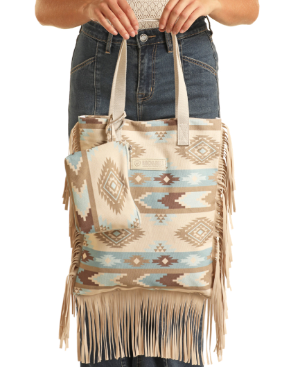 Wrangler Tooled Aztec Pattern Print Concealed Carry Tote/Crossbody Tan