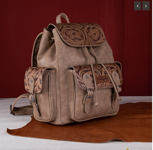 Wrangler Vintage Floral Tooled Backpack Khaki