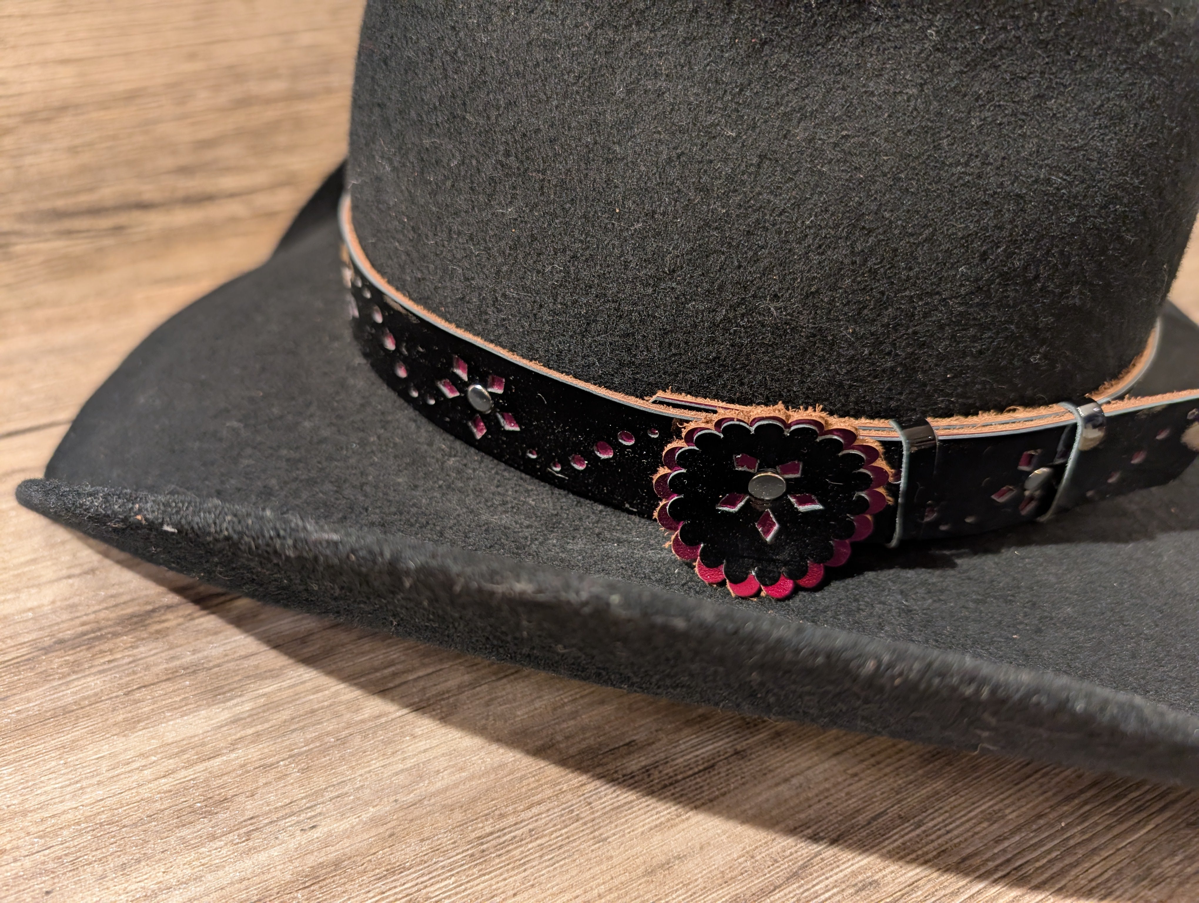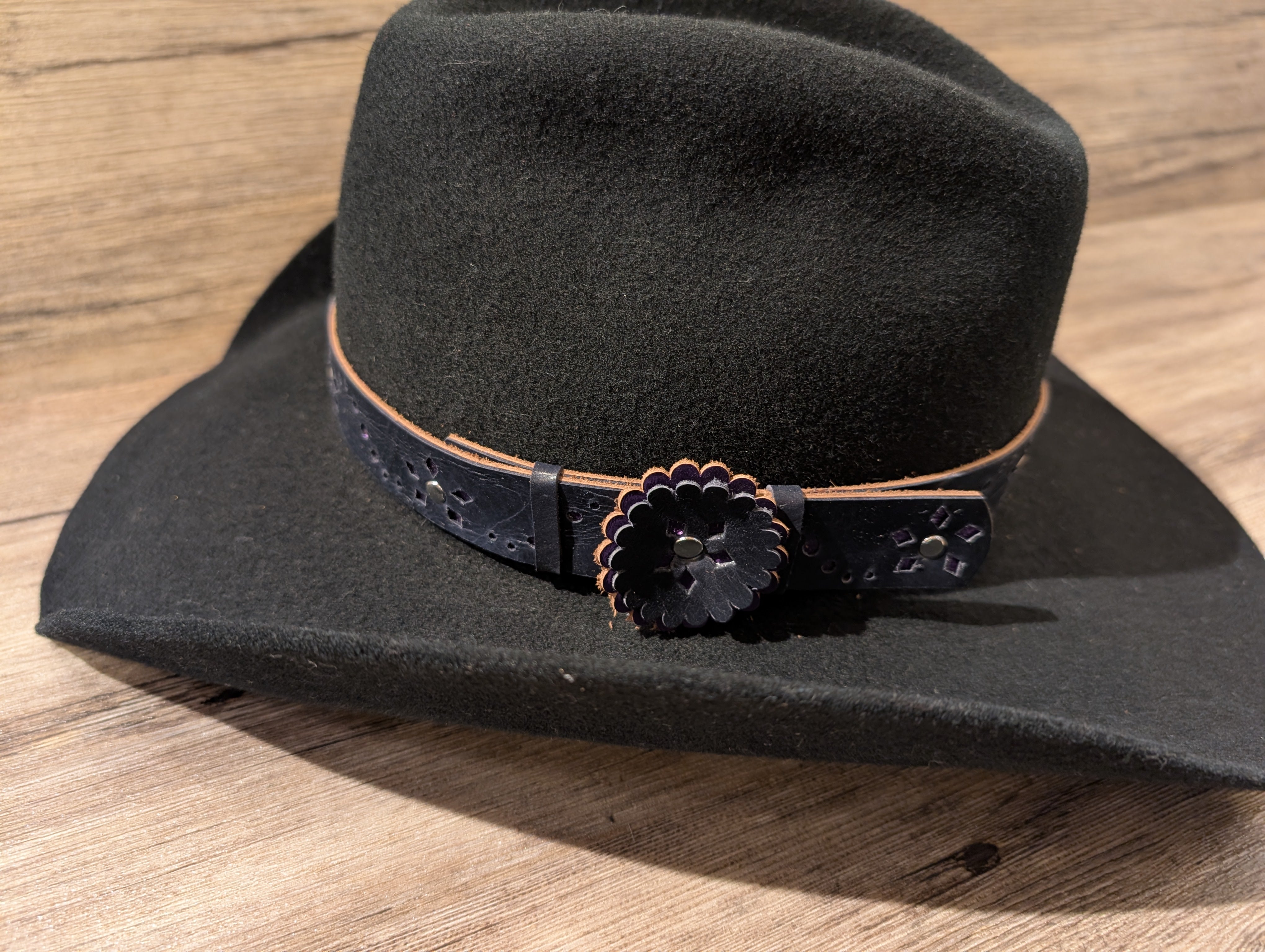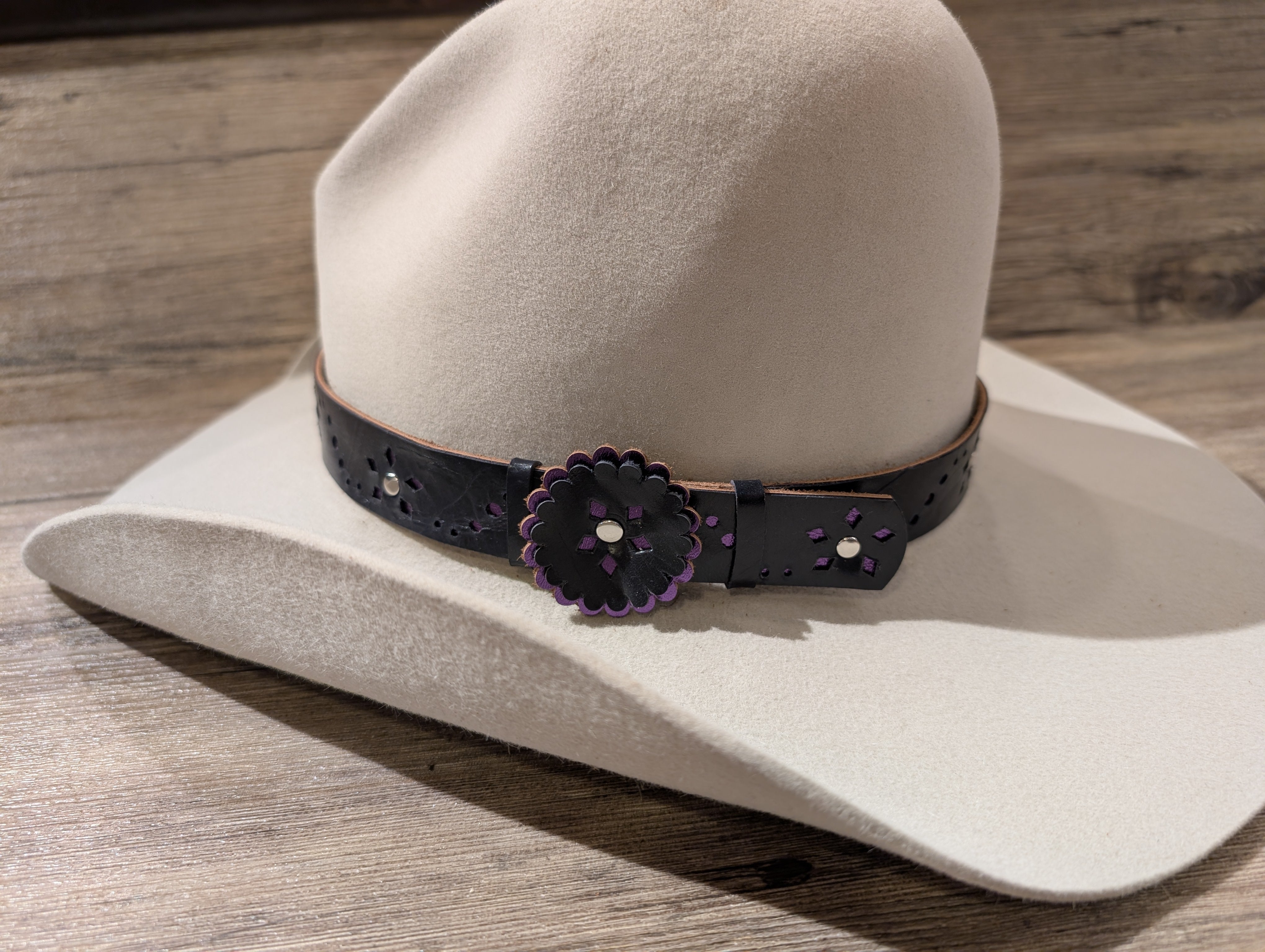 Handcrafted 1" leather hatband made by Beyond the Barn