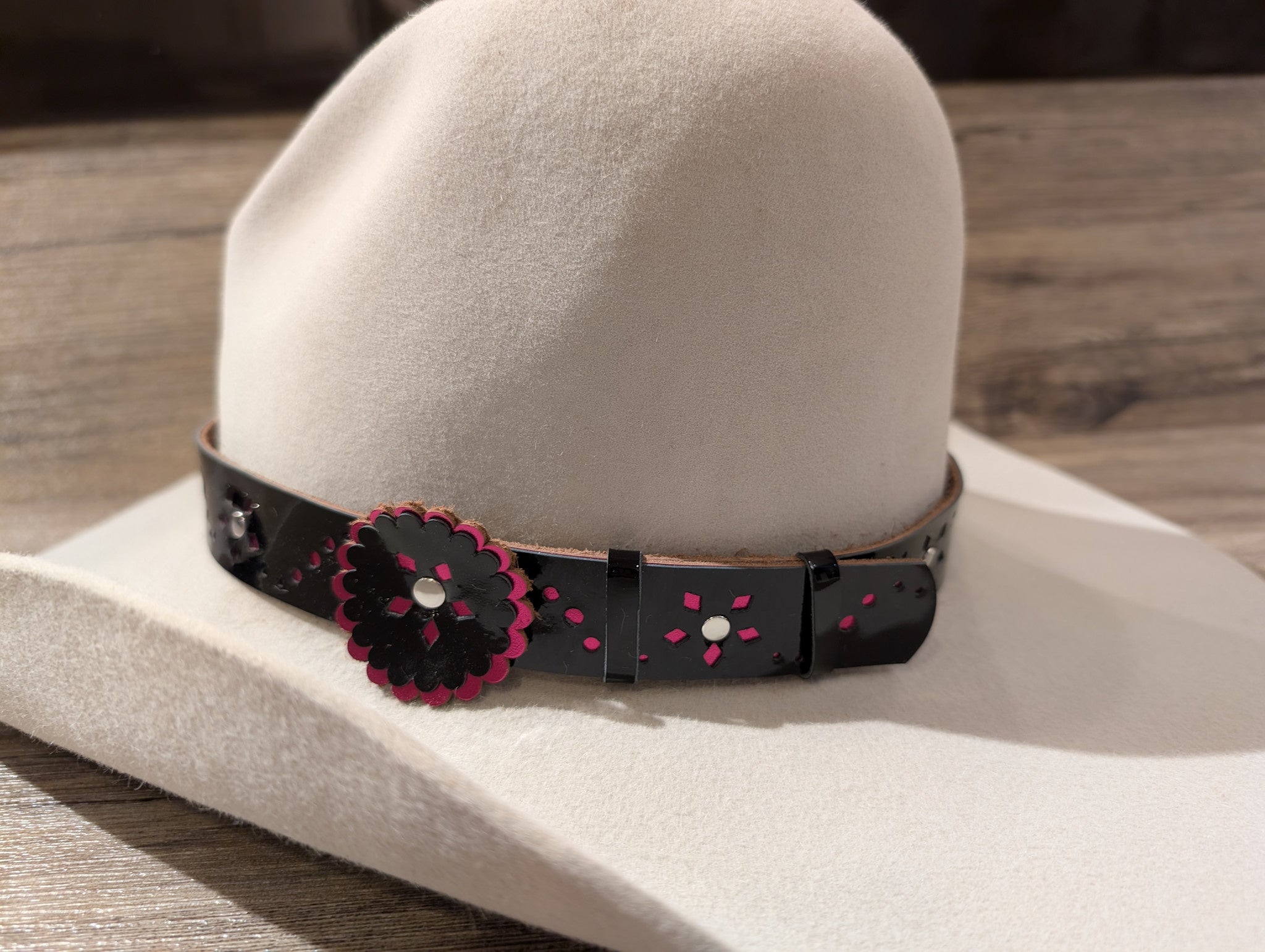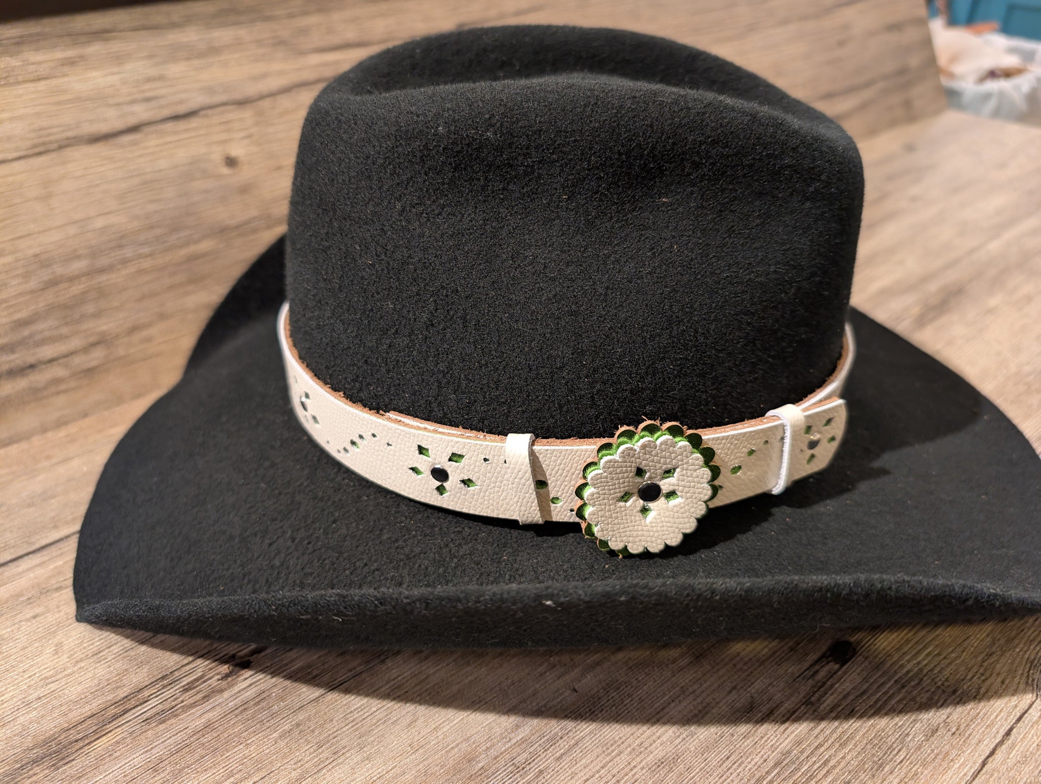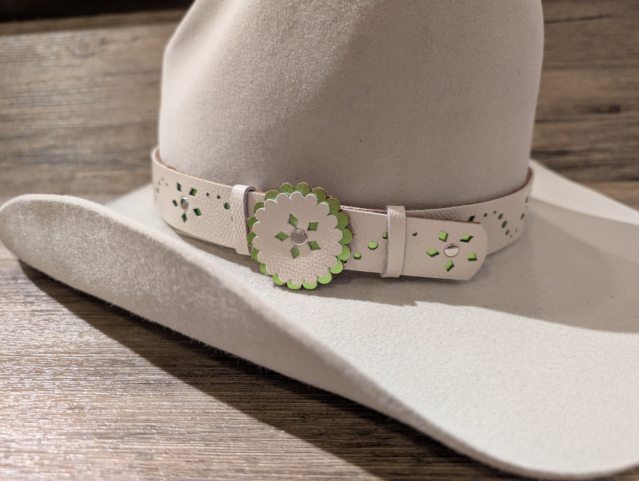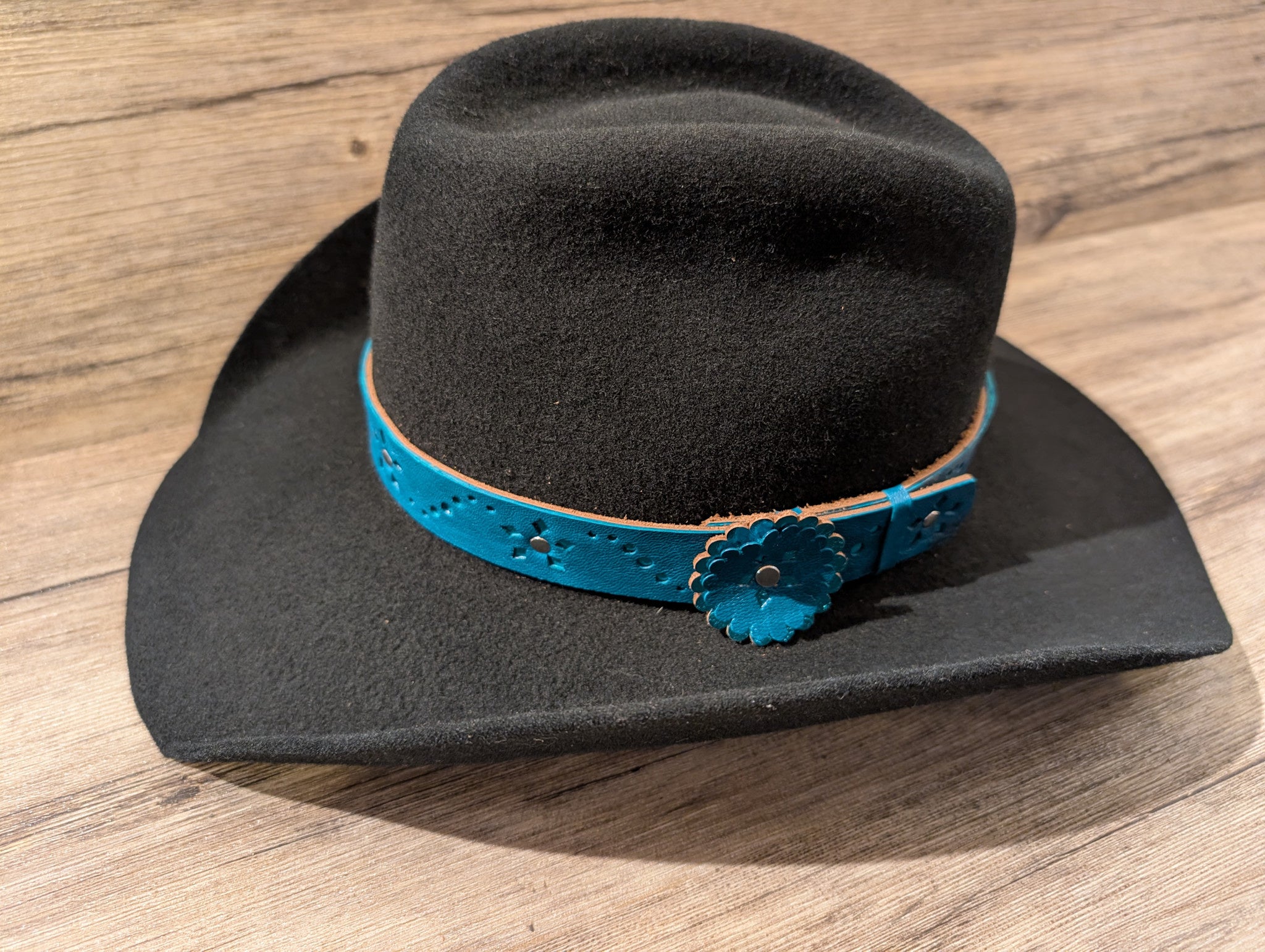 Handcrafted 1" leather hatband made by Beyond the Barn