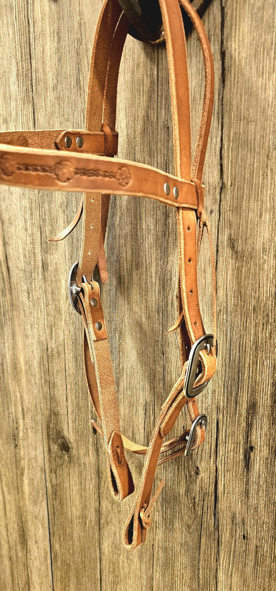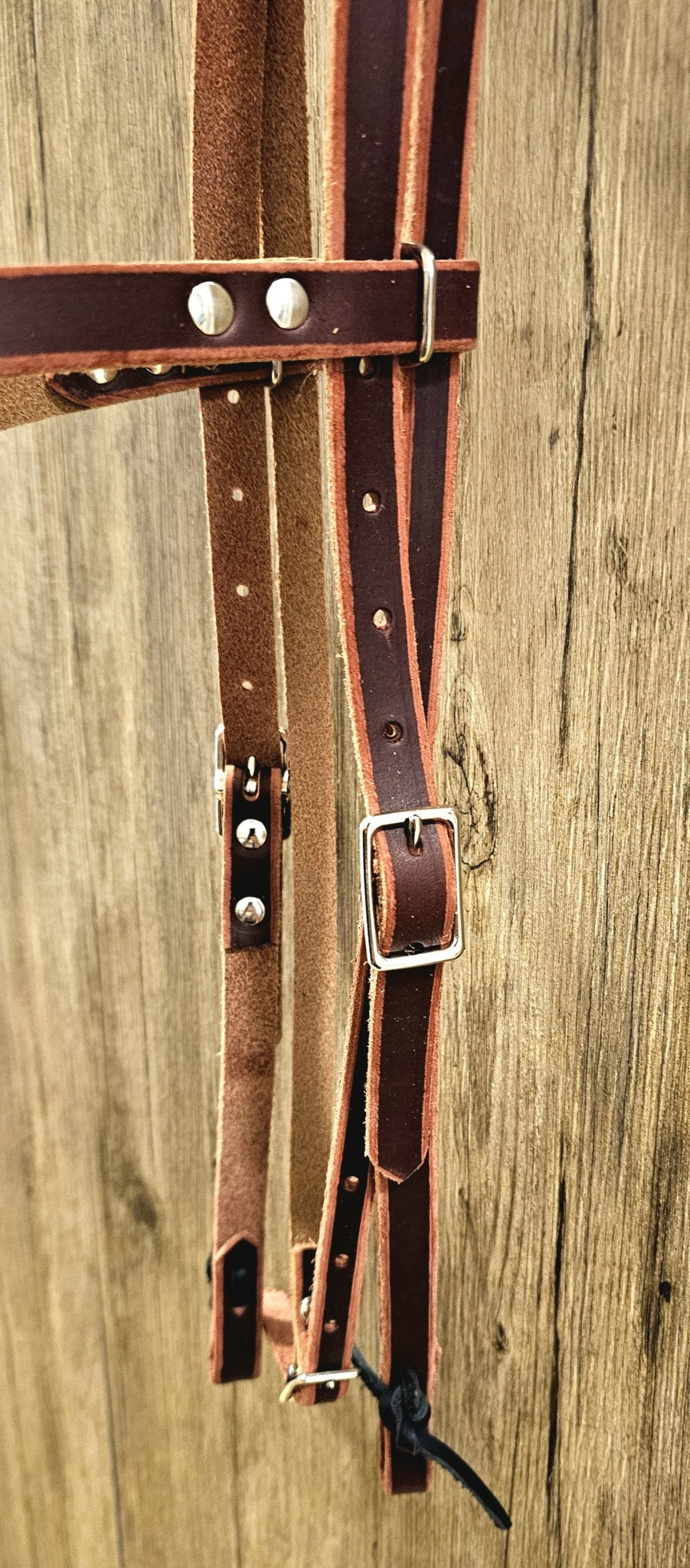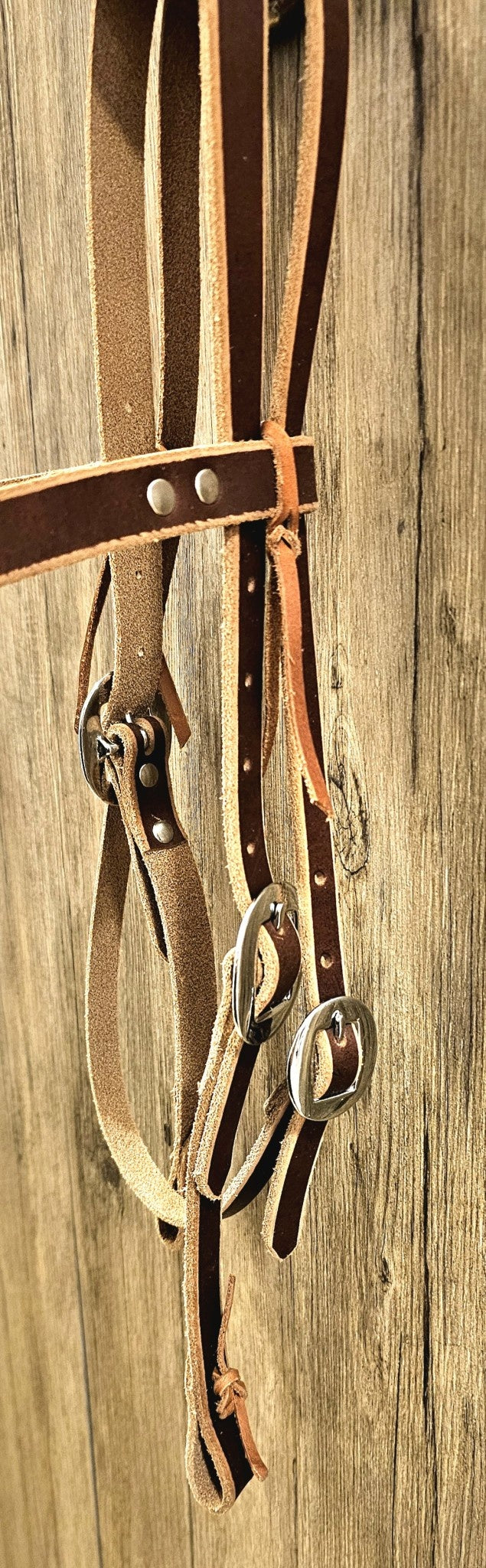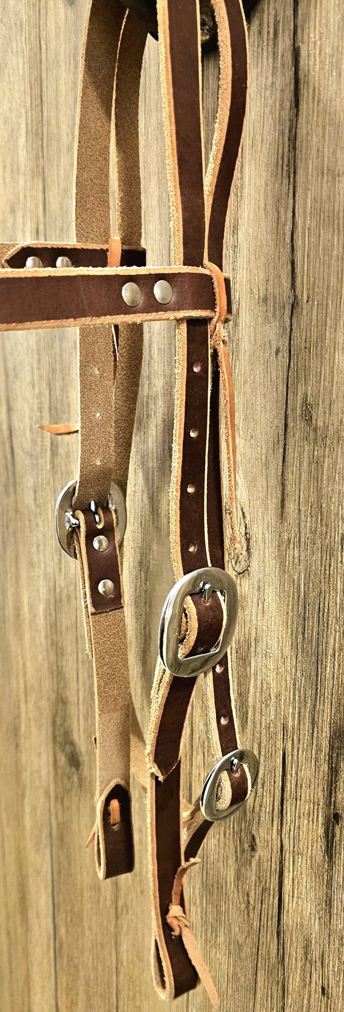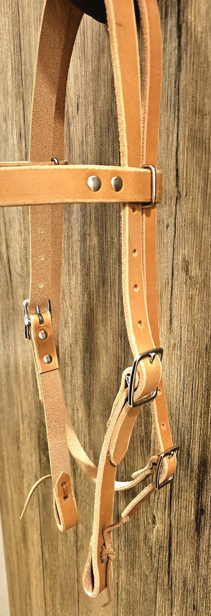 Bring craftsmanship and durability to your tack setup with our Handmade Leather Bridle Headstall, built right here in our shop with attention to detail in every stitch. Cut from quality leather that feels sturdy yet supple, this headstall is made to stand up to everyday riding while breaking in beautifully over time. Clean lines, dependable hardware, and a timeless Western look make it a reliable piece you’ll reach for ride after ride.
