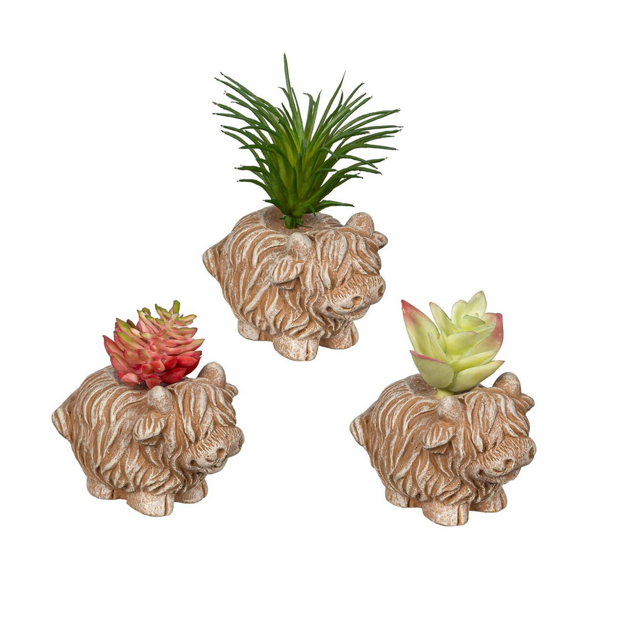 Petal & Plow Faux Floral Table Decor, Highland Cow Succulent