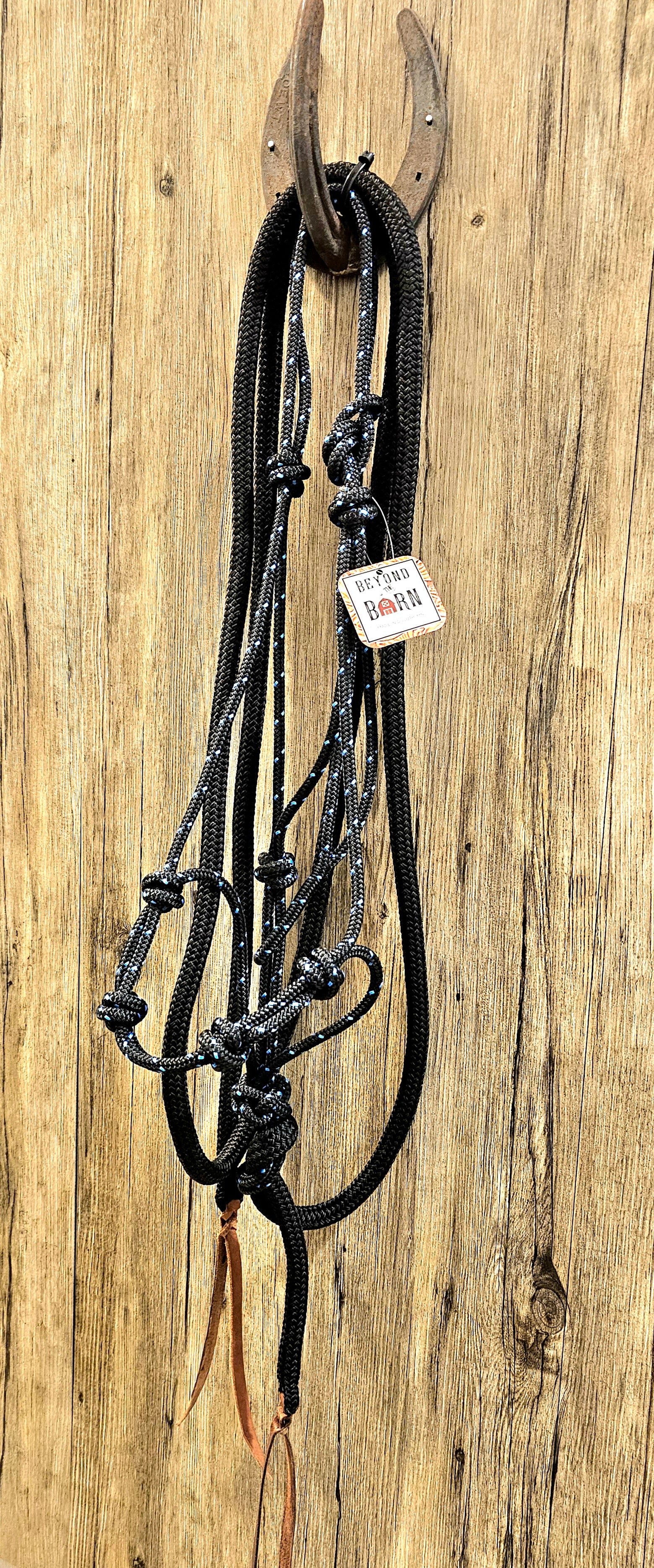 Premium Yacht Rope Halter/Lead Black Blue Stripe/Black Average
