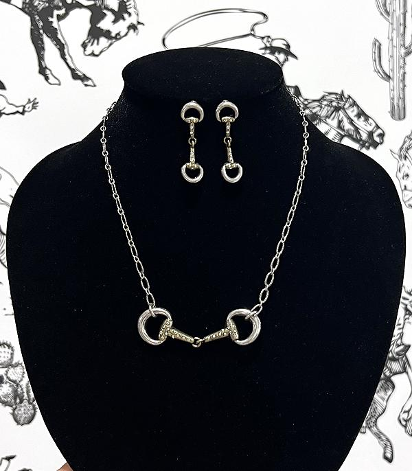 Western Horsebit Necklace Set Silver/Gold
