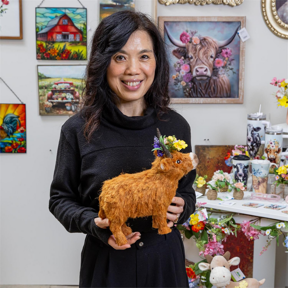 Petal Plow Table Decor Natural Fiber Floral Highland Cow 11.5"L