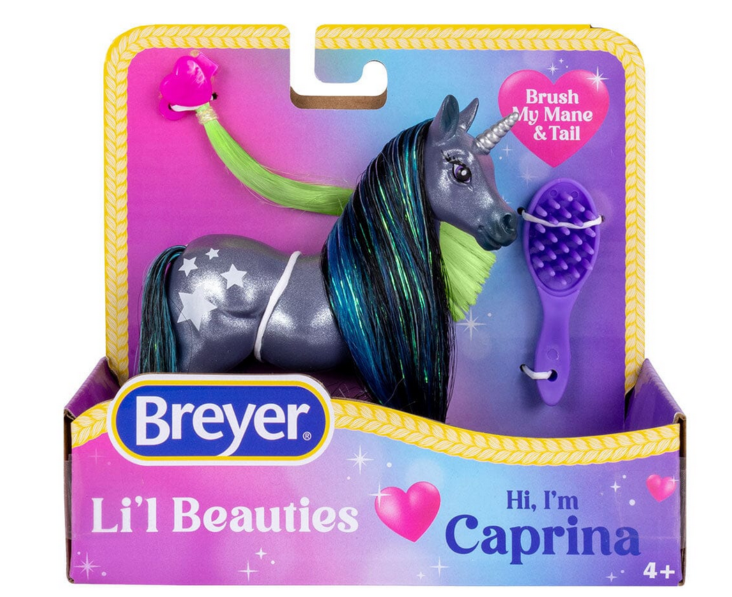 Beautiful coats, vibrant colors, and lots of hair! Li’l Beauties are ready to shine with their big personalities, hair accessories, and brush! Each Li'l Beauty features one horse or unicorn, hair clip with hair extension, and brush! With four fun and unique styles, you'll want to collect them all!