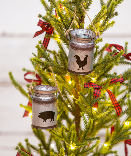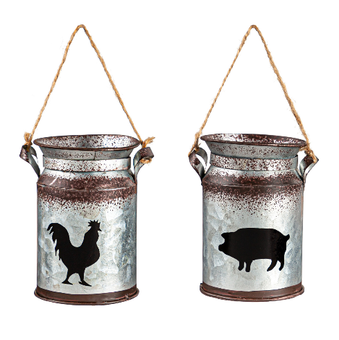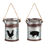 Metal Bucket w/Barn Animal Ornament