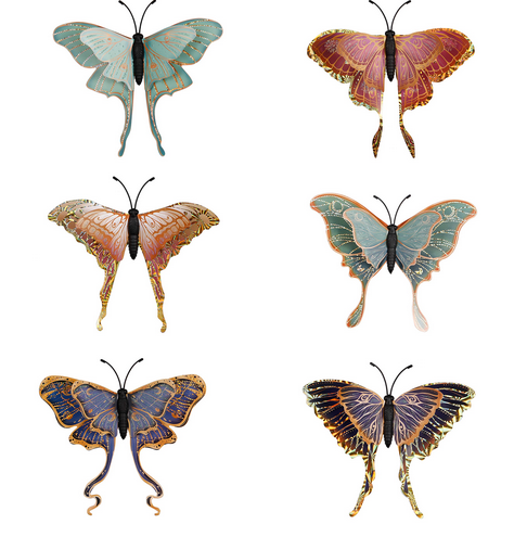 Turn any garden or yard into an enchanting wonderland with this Outdoor Magnetic Luna Moths Set. It features six different moths, all with beautiful color palettes and detailed designs. They’re magnetic so they can be added to anything metal like a bird cage, a bench, a trellis, or even metal planters. These brightly colored moths are perfect for anyone who wants to take their garden or home from drab to fab.