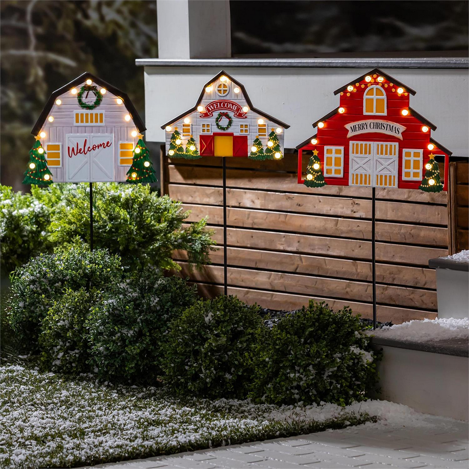 Holiday Poinsettia Barns Solar Garden Stake 36"H