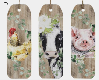 Wood Farm Animal Wall Art on Rope Assort.