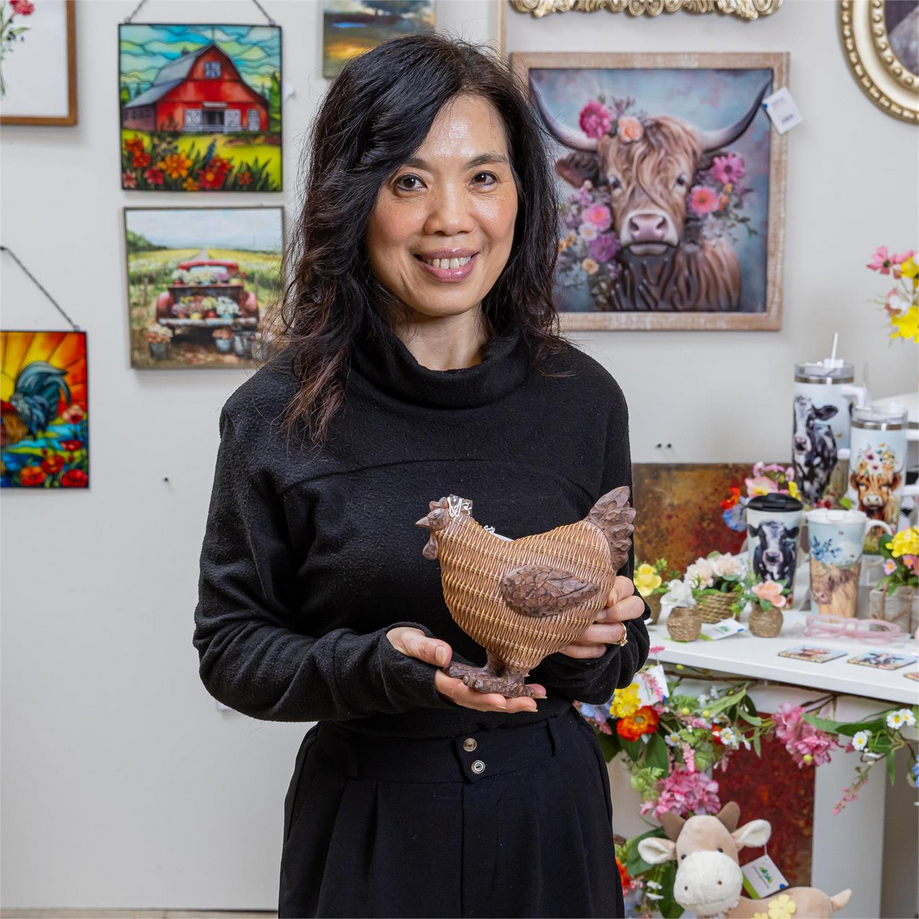 Petal Plow Table Decor Resin Chicken, 7.75"H