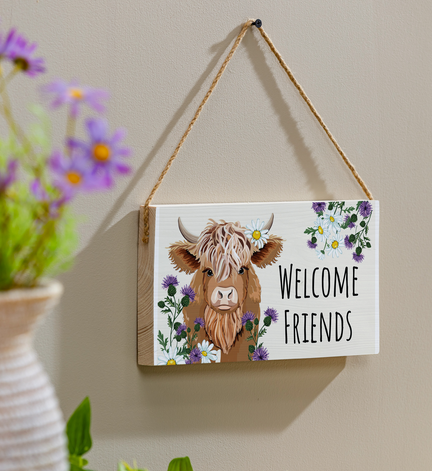 Petal Plow Hanging SignHighland Cow Welcome Friends, 11" L x 6" H