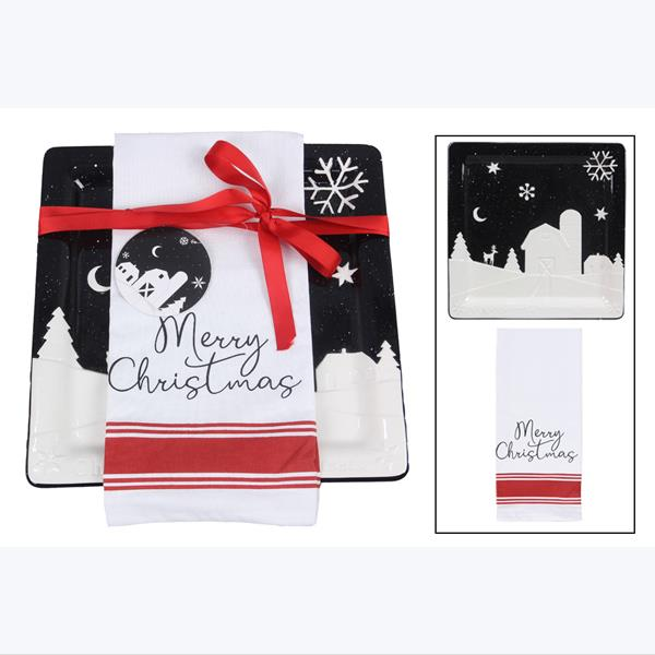 Ceramic Country Christmas Cookie Plate Set