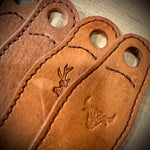 Protect your hands in rugged, timeless style with this hand-made leather cast iron pan handle cover. Crafted entirely from durable, full-grain leather, this cover is designed for outdoor cooking—perfect for campfires, grills, and backyard kitchens. Simply wet the leather before first use to mold it to your cast iron handle for a secure, custom fit.