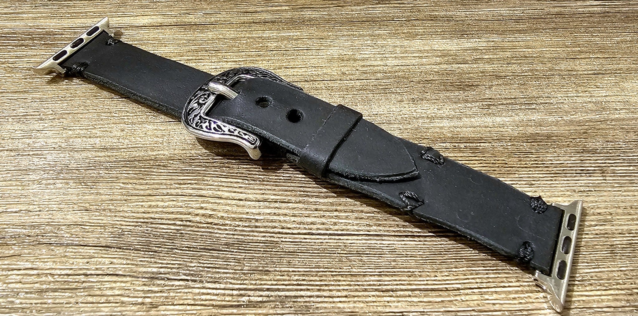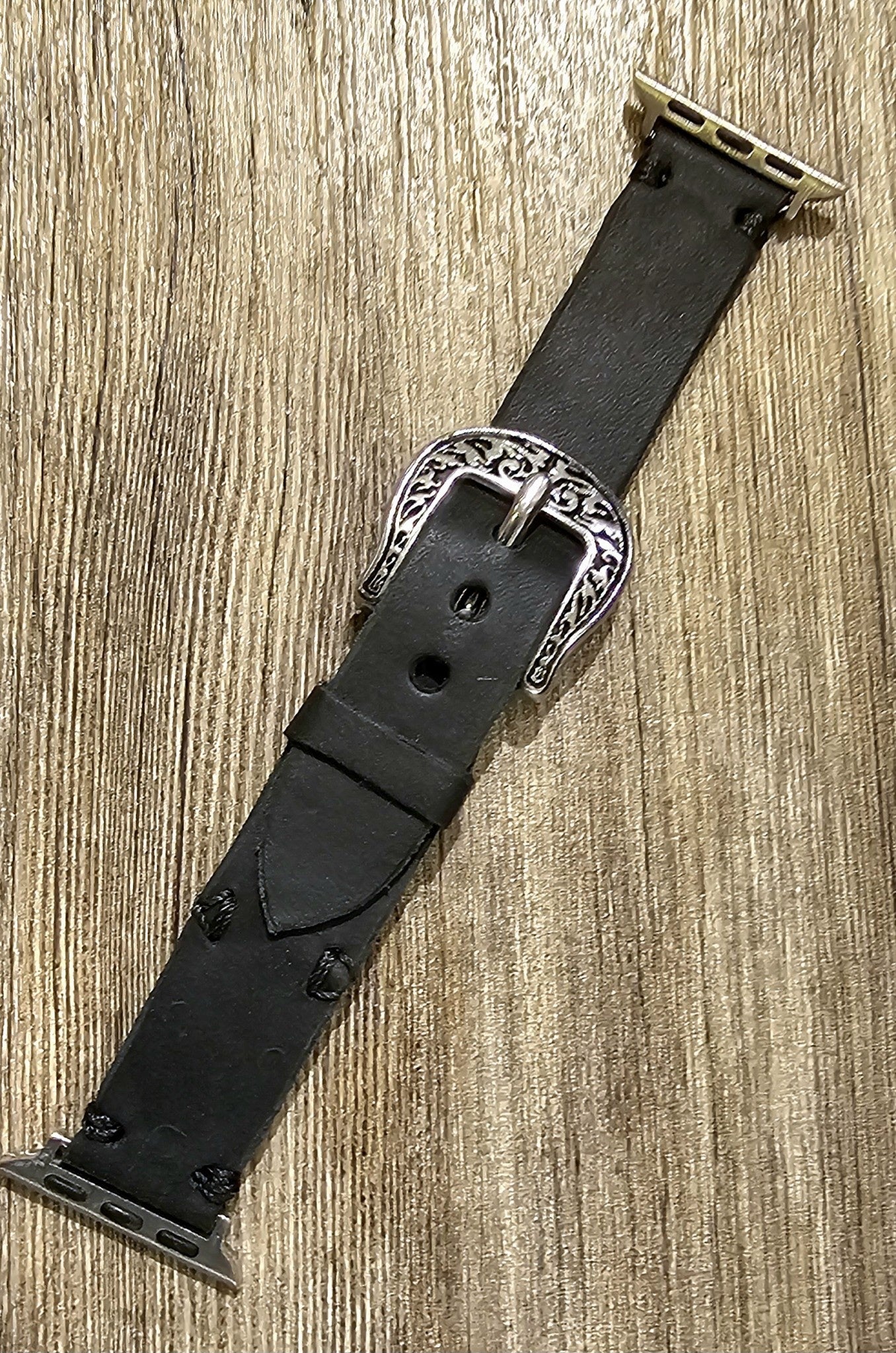 All leather and stainless steel apple watch band. Hand made in our shop with full grain black leather. Adjustable and sleek design that will stand out. Other colors available upon request. Call our custom shop to inquire about custom options!