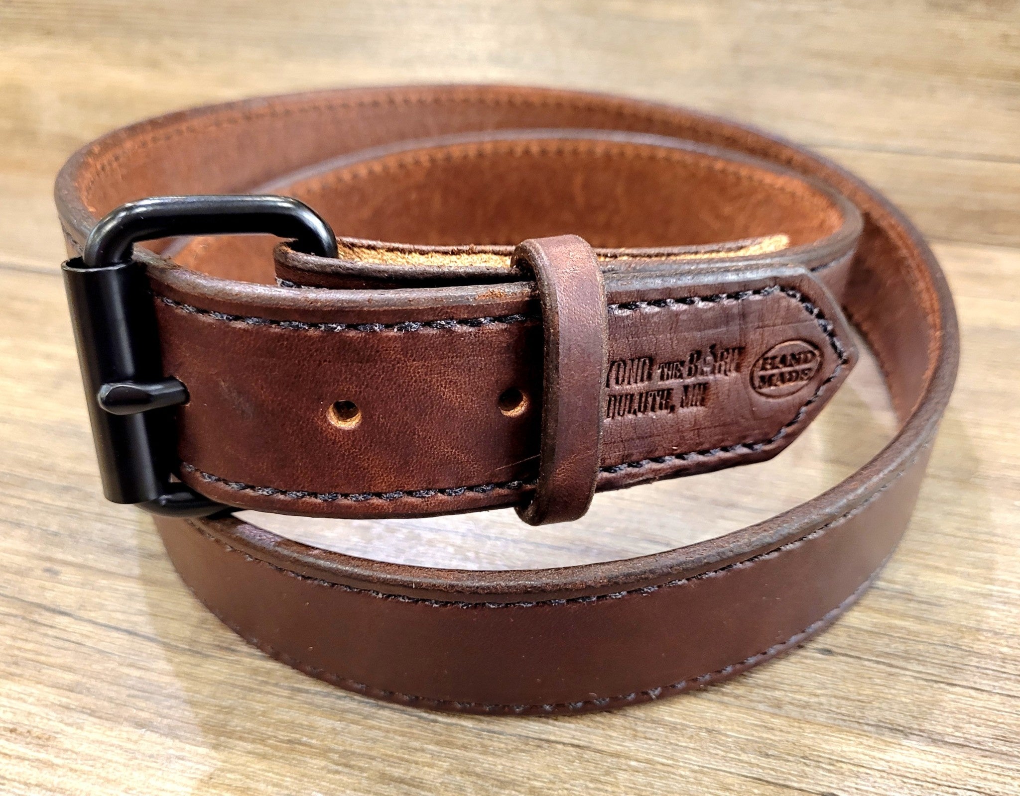 - Material: Brown latigo leather, hand-cut and hand-stitched in Duluth, MN