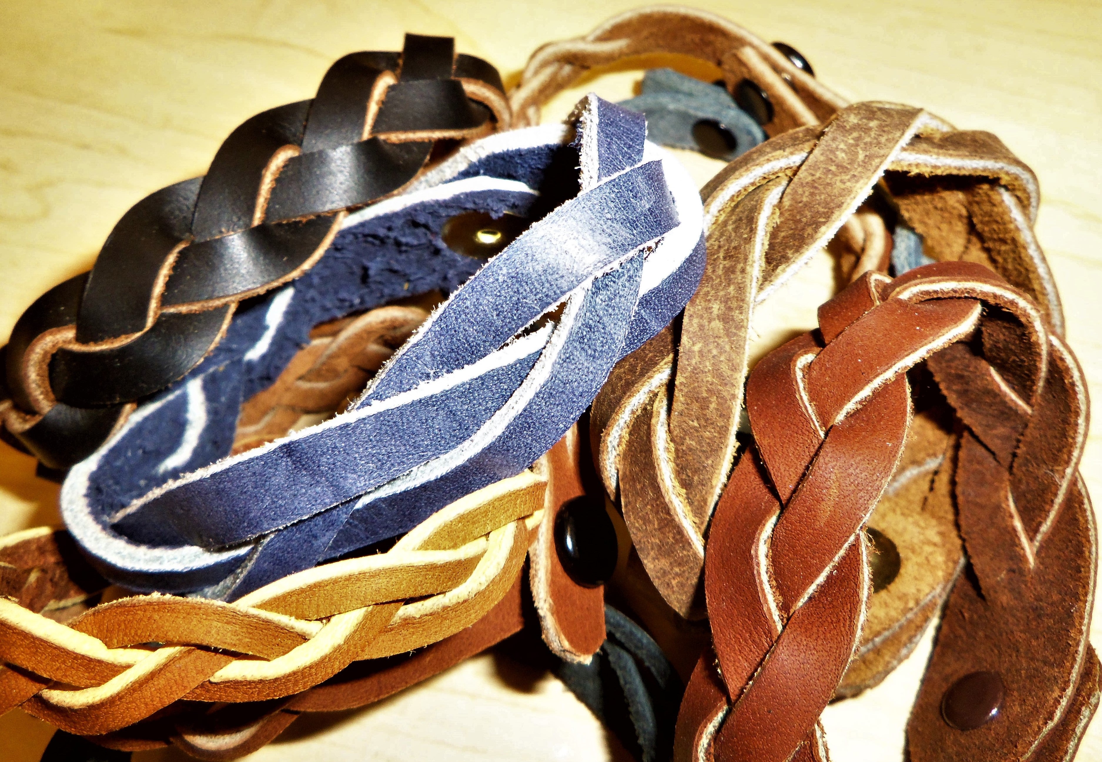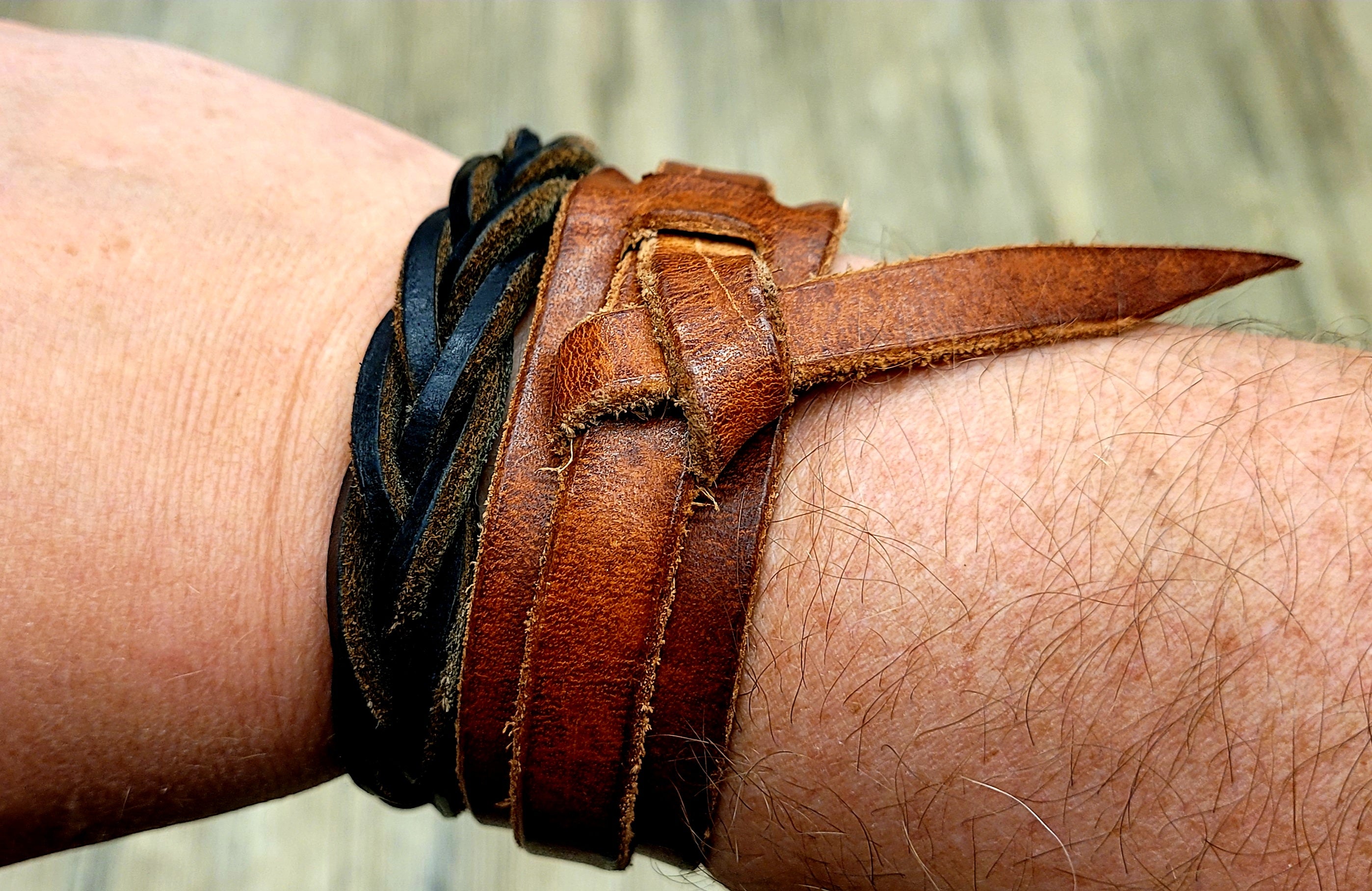 • Hand-braided “mystery braid” design made from a single leather strip
