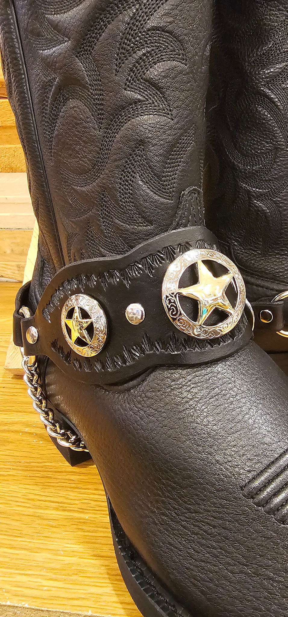 Tooled Texas Star Concho Black Leather Boot Chains Pair BTB