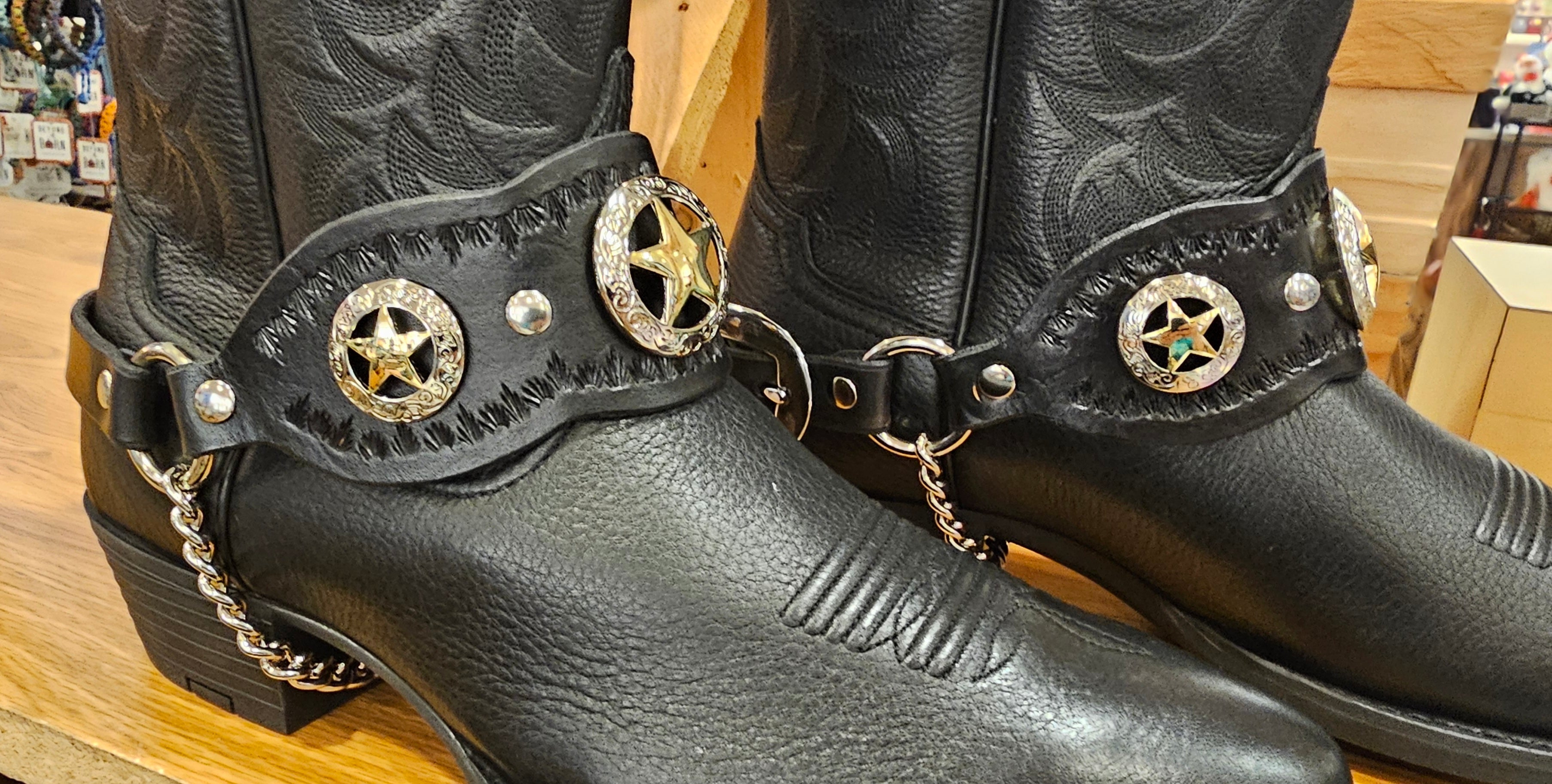 Make your boots unforgettable with this expertly crafted boot chain set that combines timeless leatherwork with a dash of starry charm.