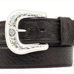 - Buckle: Removable bright silver-tone buckle with Western engraving
