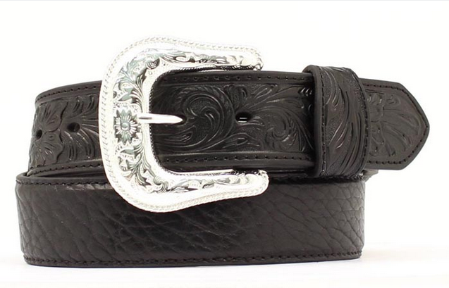 The Nocona Men’s Black Bull hide Belt is a rugged, full-grain leather belt with embossed ends and a removable buckle—ideal for Western work-wear or everyday style.