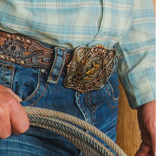 Petite Two-Tone Engraved Buckle with Barrel Racer