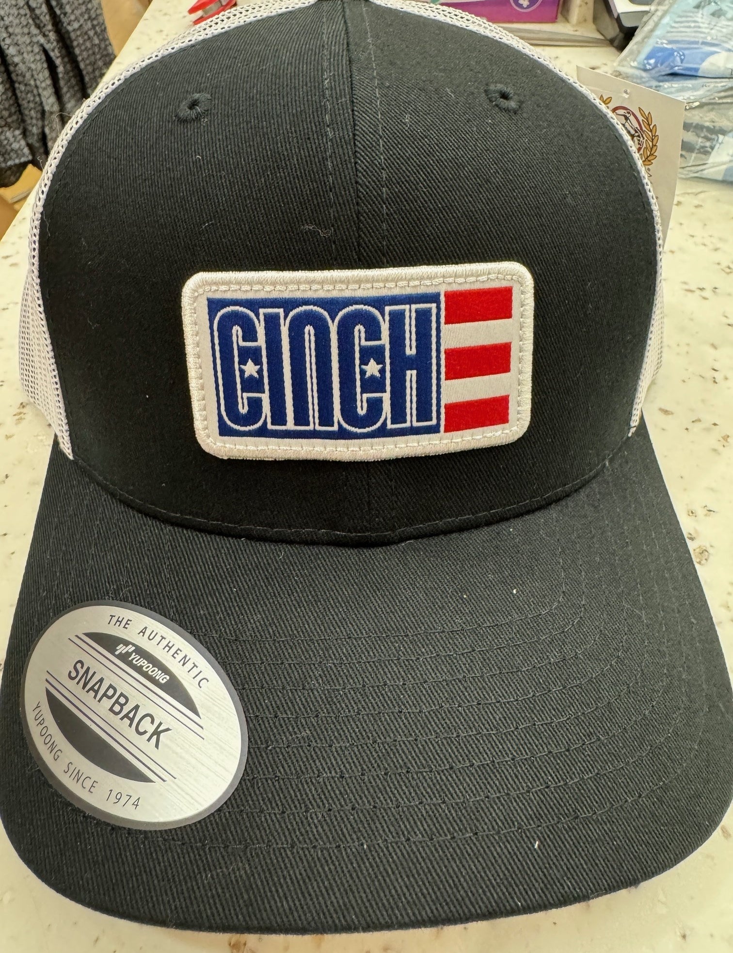 Mens Cinch Trucker Cap - Black w/ Red, White Blue Patch