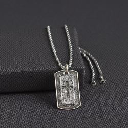 Silver Strike Mens Necklace 24" Dog Tag Cross Silver