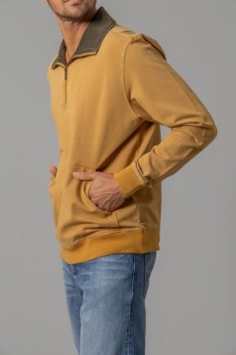 Details: 1/4 zip, Kimes Ranch patch on front left chest, pouch pocket
