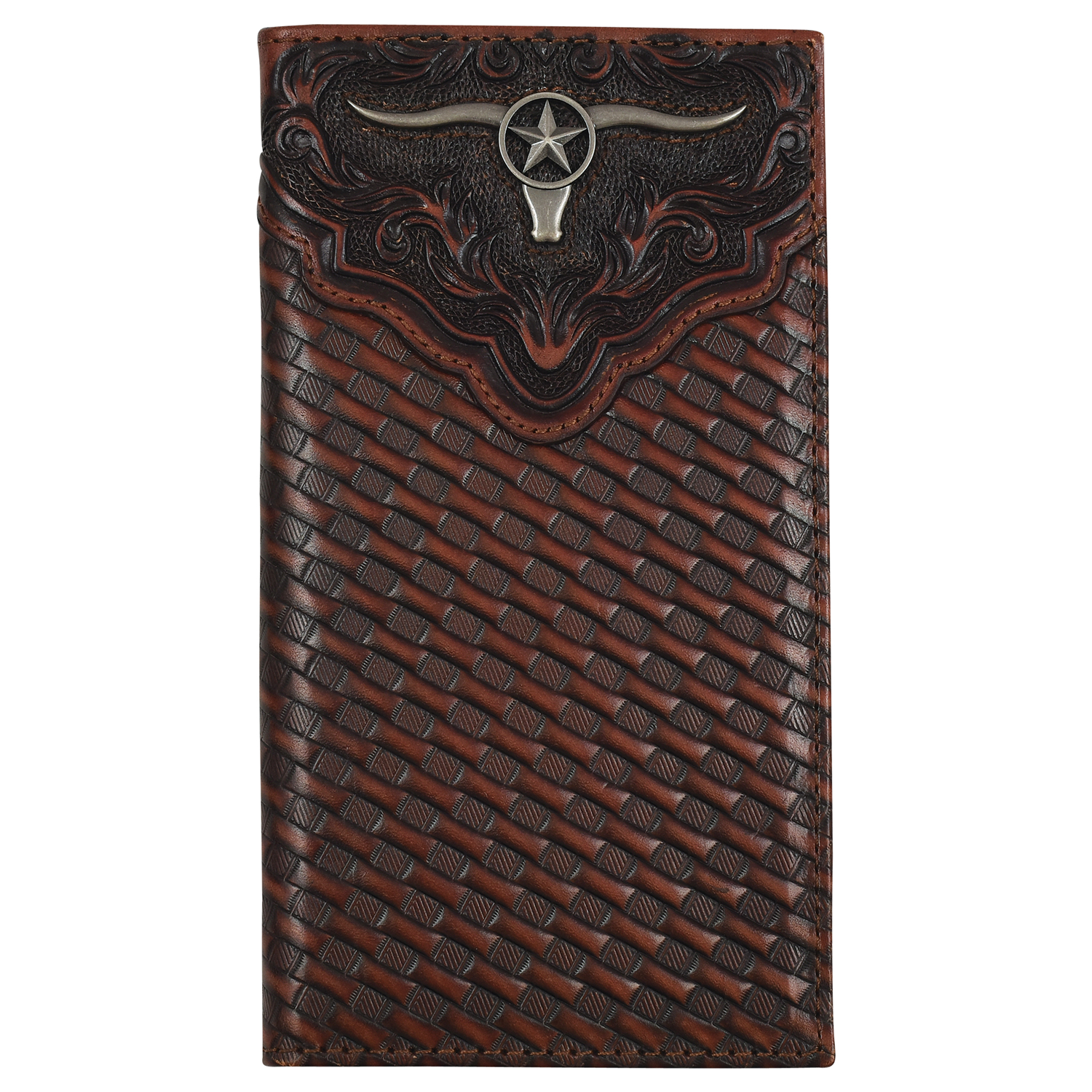 Justin Mens Rodeo Wallet Embossed Yoke W/Basketweave and Steerhead