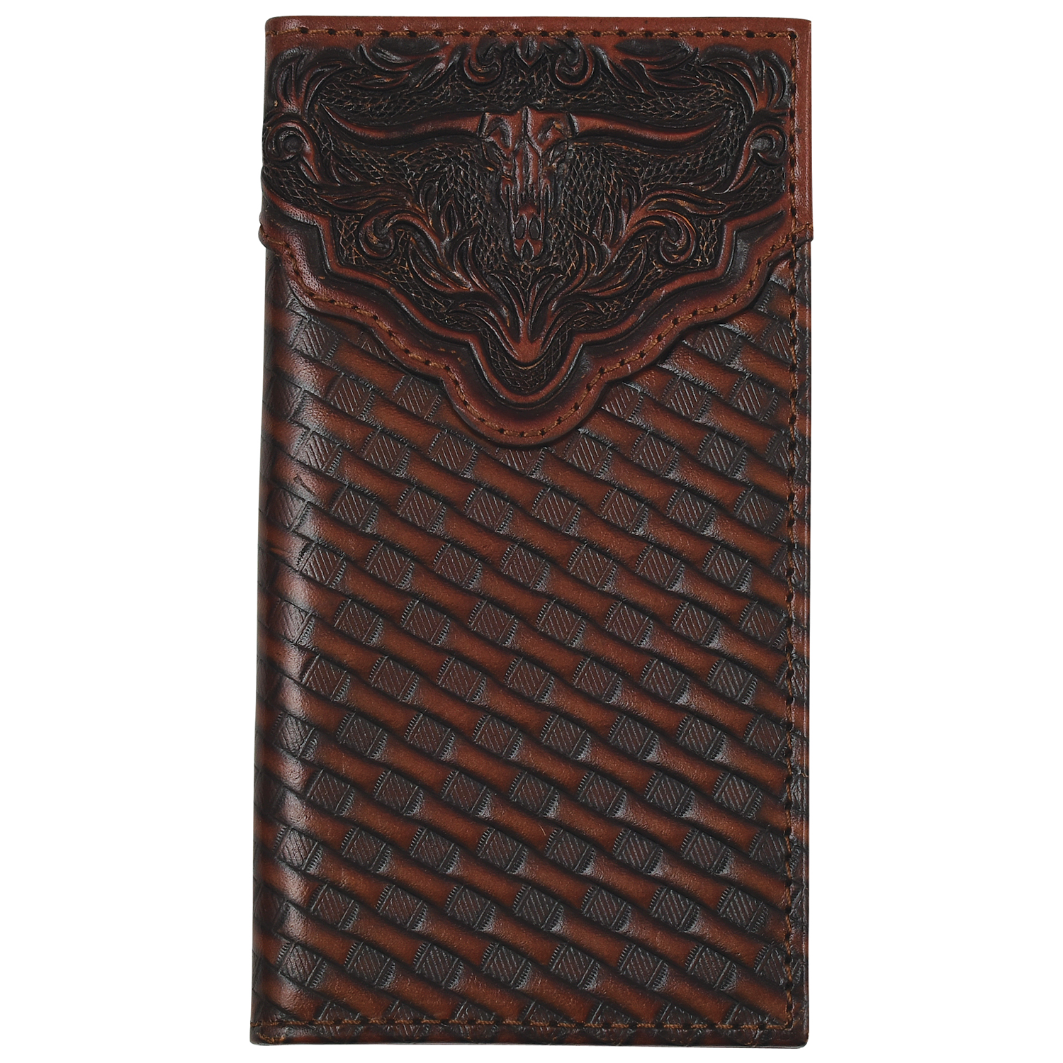 Justin Mens Jr Rodeo Wallet Embossed Yoke W/Basketweave and Steerhead