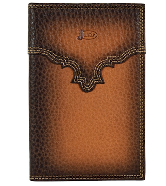 Justin Mens Jr Rodeo Wallet Embossed Yoke W/Basketweave and Steerhead